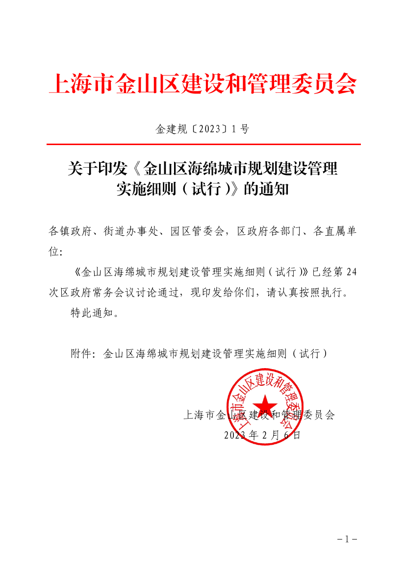 关于印发《金山区海绵城市规划建设管理实施细则(试行)》的通知