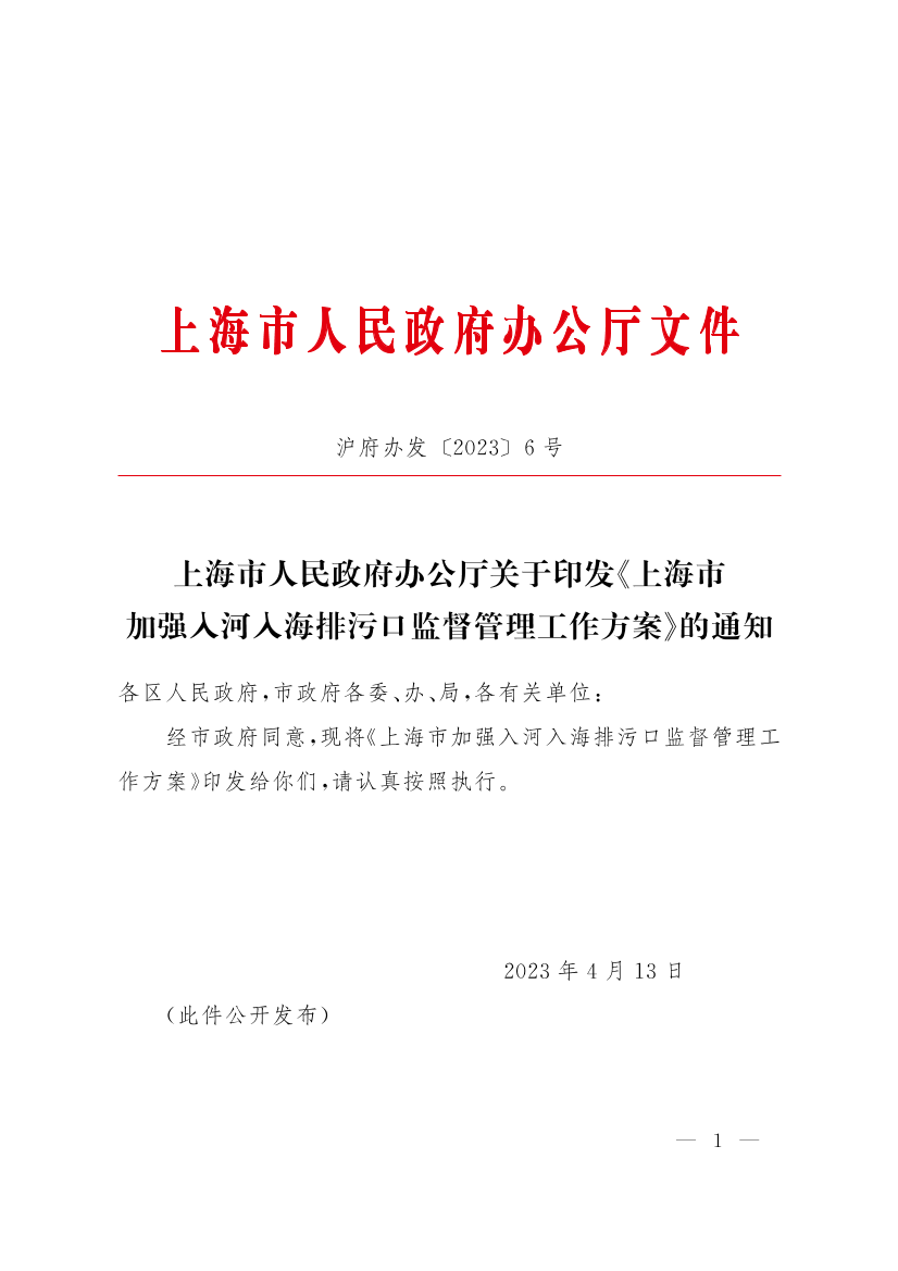 上海市人民政府办公厅关于印发《上海市加强入河入海排污口监督管理工作方案》的通知