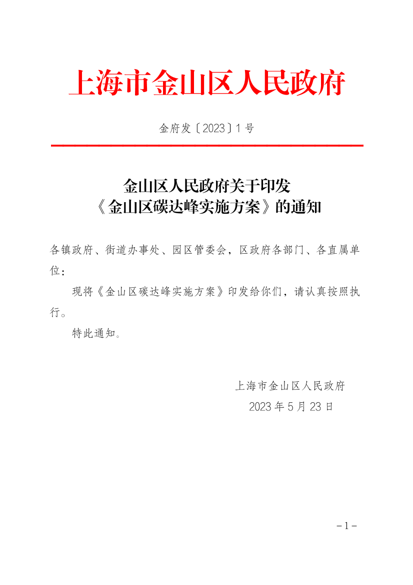 金山区人民政府关于印发《金山区碳达峰实施方案》的通知