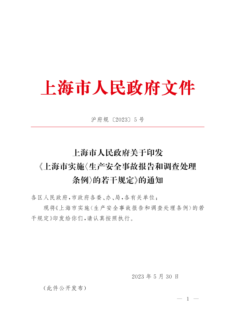 上海市人民政府关于印发《上海市实施〈生产安全事故报告和调查处理条例〉的若干规定》的通知