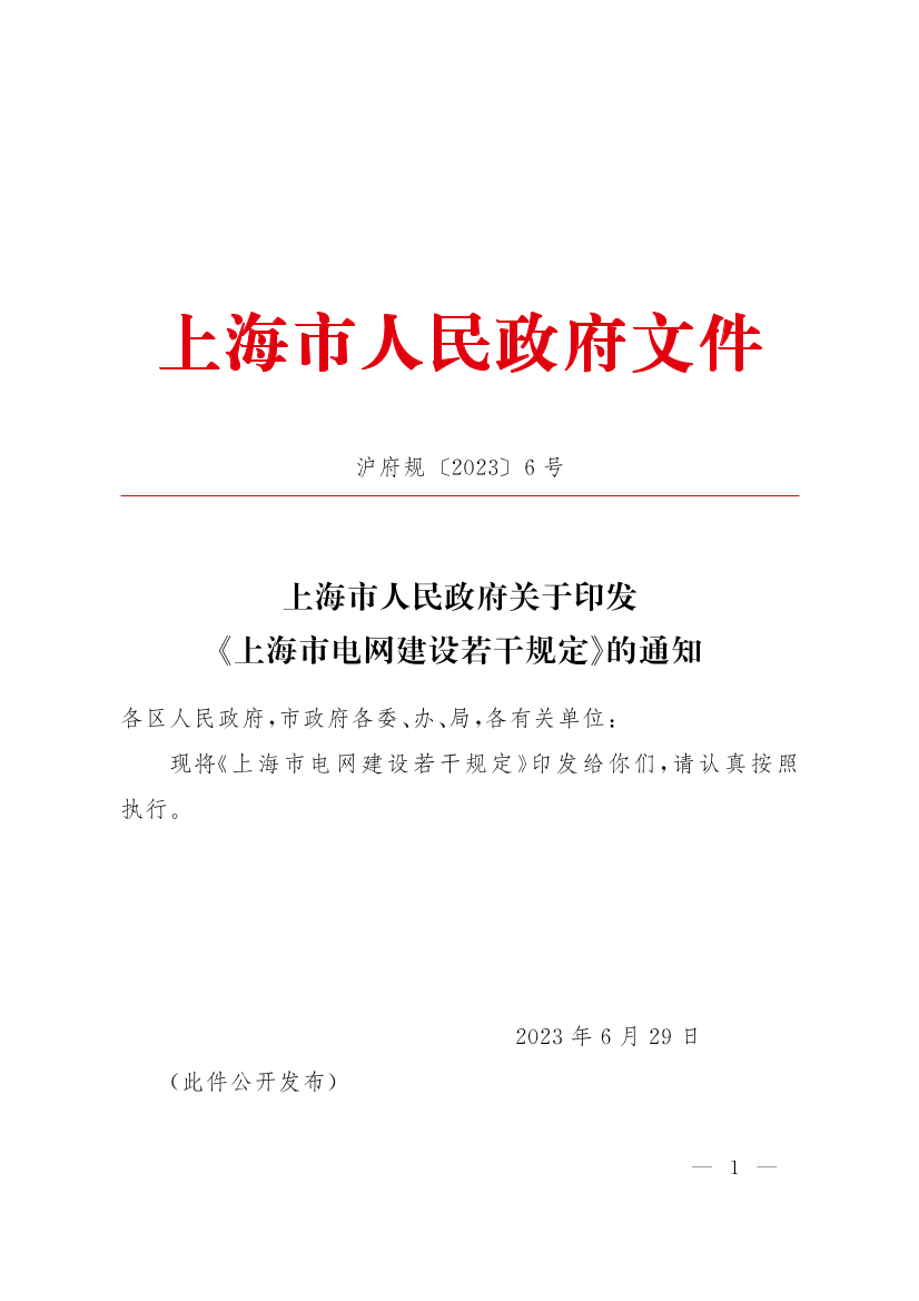 上海市人民政府关于印发《上海市电网建设若干规定》的通知