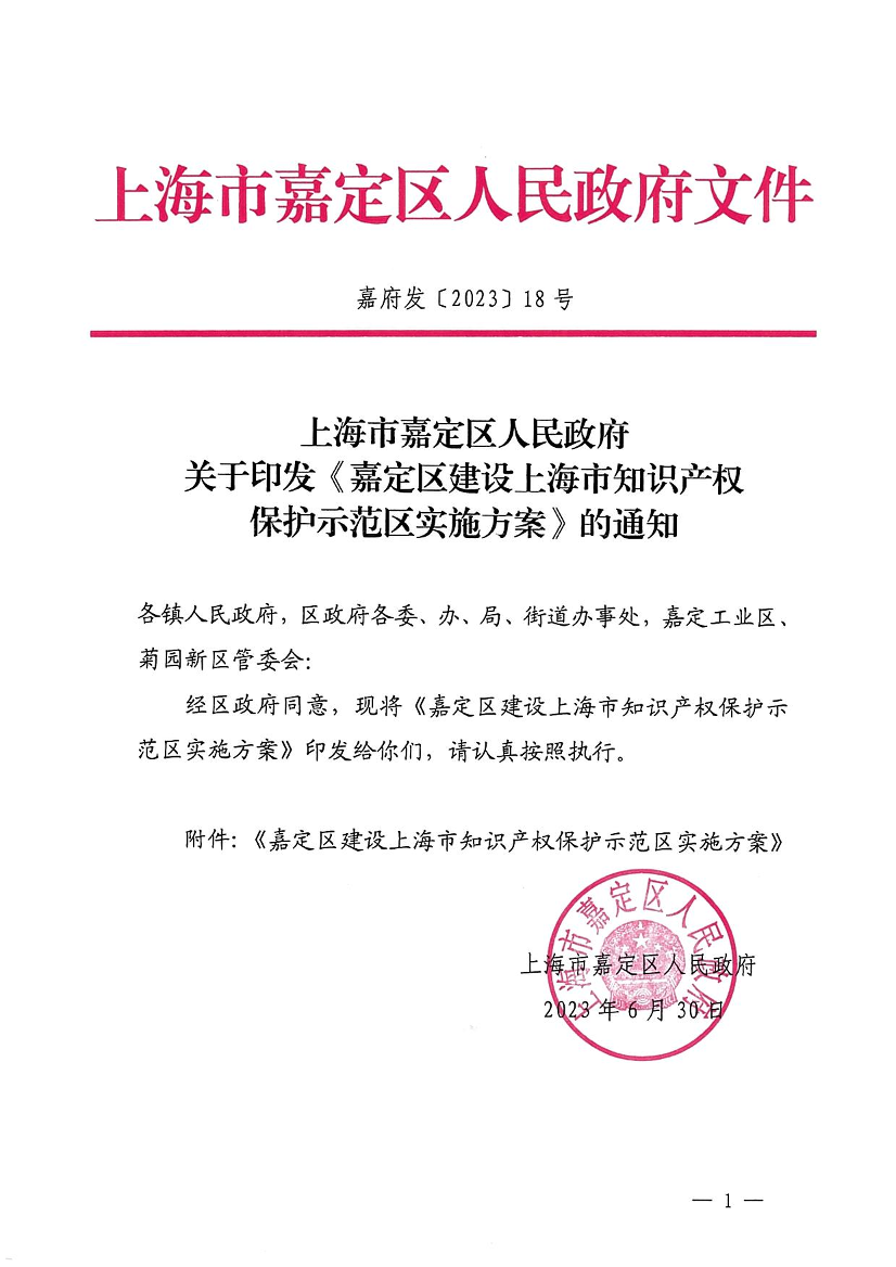 附件:《嘉定区建设上海市知识产权保护示范区实施方案》