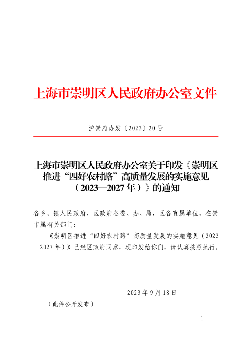 关于印发《崇明区推进“四好农村路”高质量发展的实施意见(2023—2027年)》的通知