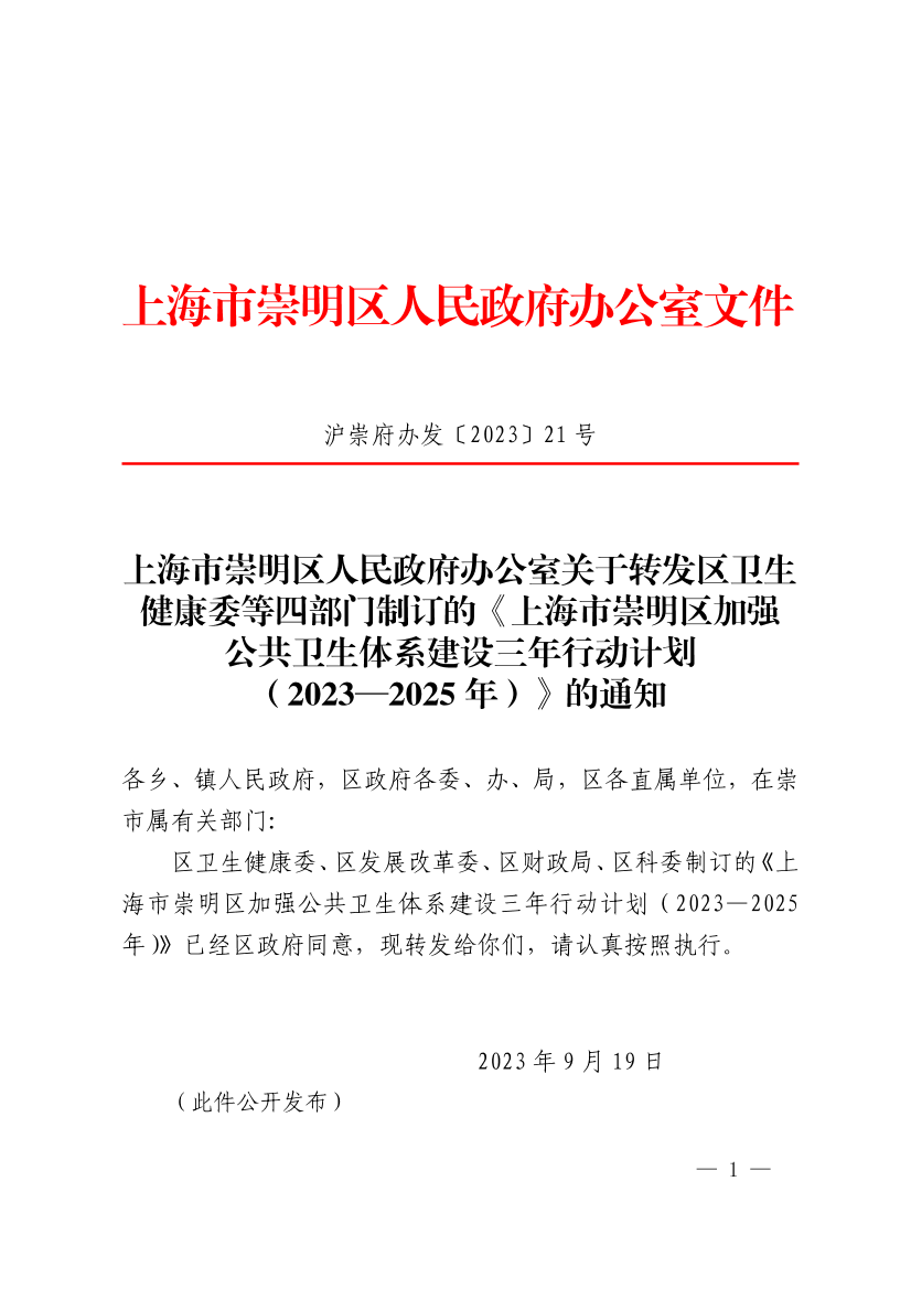上海市崇明区加强公共卫生体系建设三年行动计划(2023—2025年)