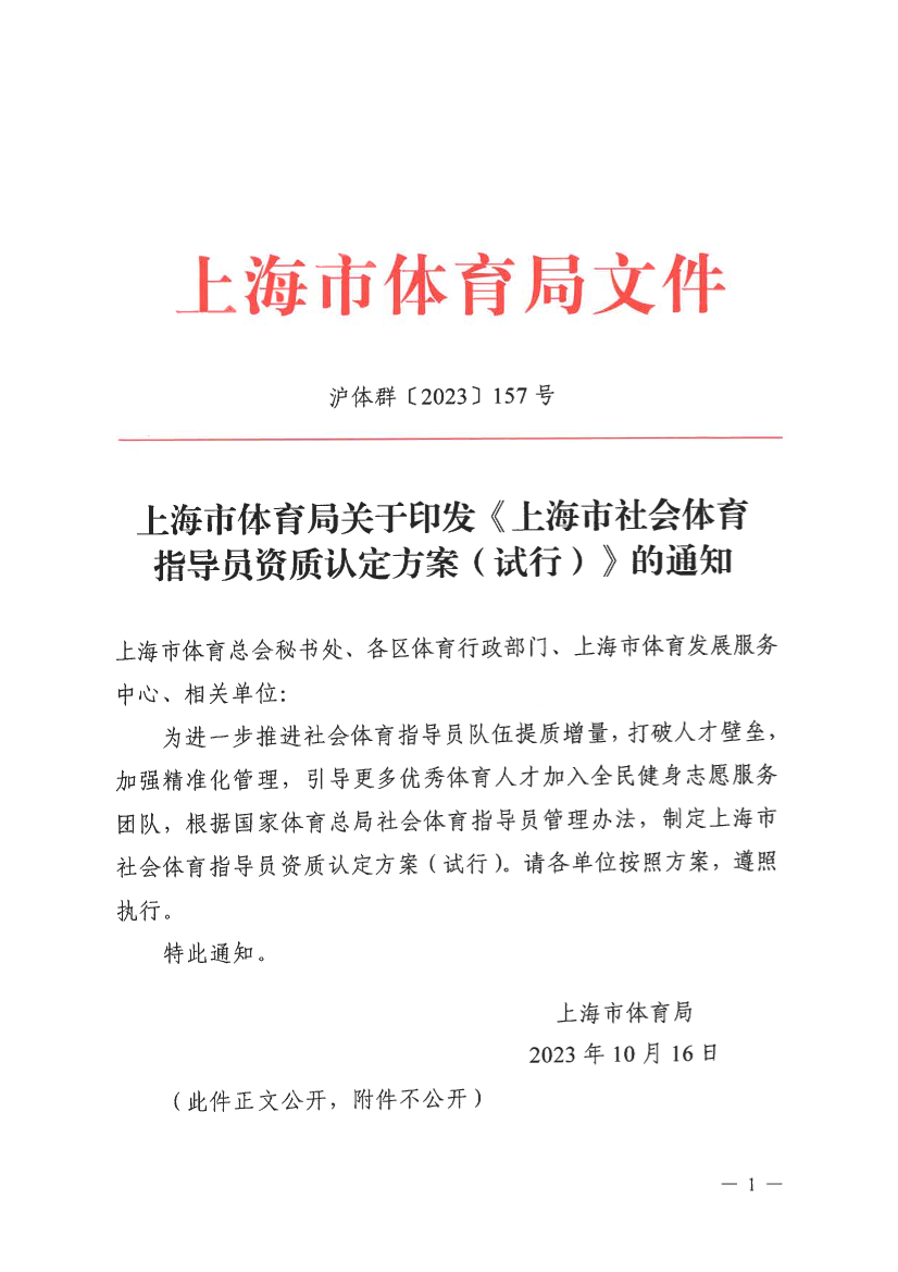 关于印发《上海市社会体育指导员资质认定方案(试行)》的通知