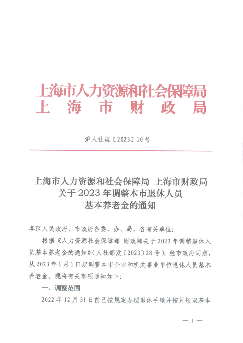 根据《人力资源社会保障部 财政部关于2023年调整退休人员基本养老金的通知》(人社部发〔2023〕28号),经市政府同意,从2023年1月1日起调整本市企业和机关事业单位退休人员基本养老金。现将有关事项通知如下: