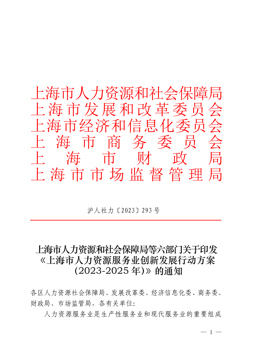 关于印发《上海市人力资源服务业创新发展行动方案(2023-2025年)》的通知