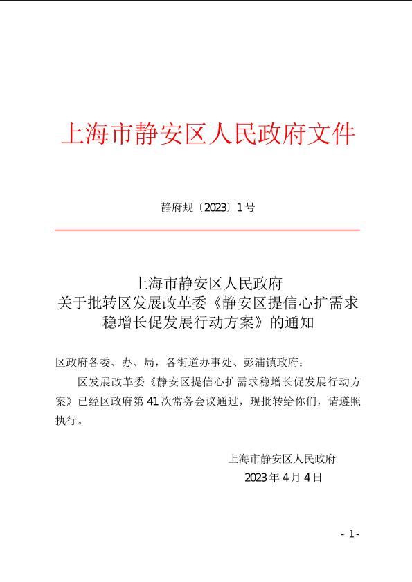 静安区提信心扩需求稳增长促发展行动方案