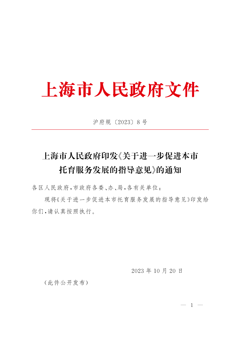 上海市人民政府印发《关于进一步促进本市托育服务发展的指导意见》的通知