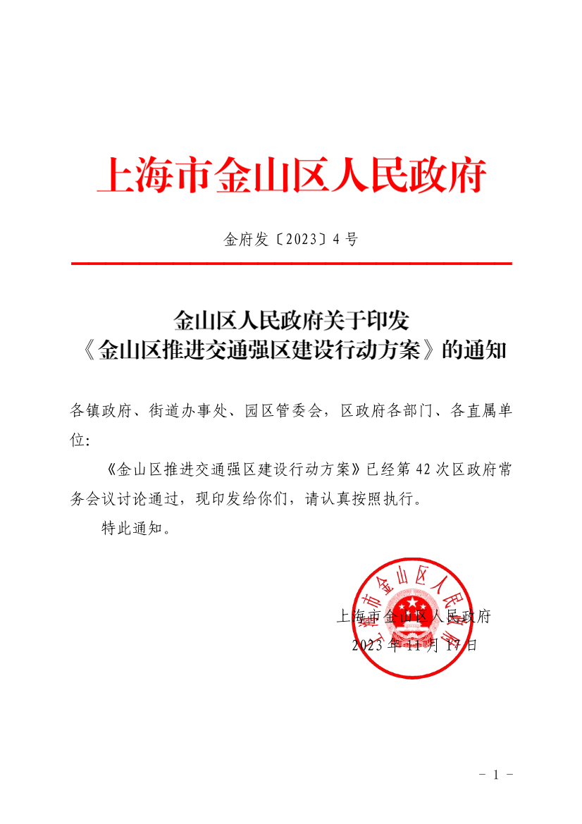 关于印发《金山区推进交通强区建设行动方案》的通知