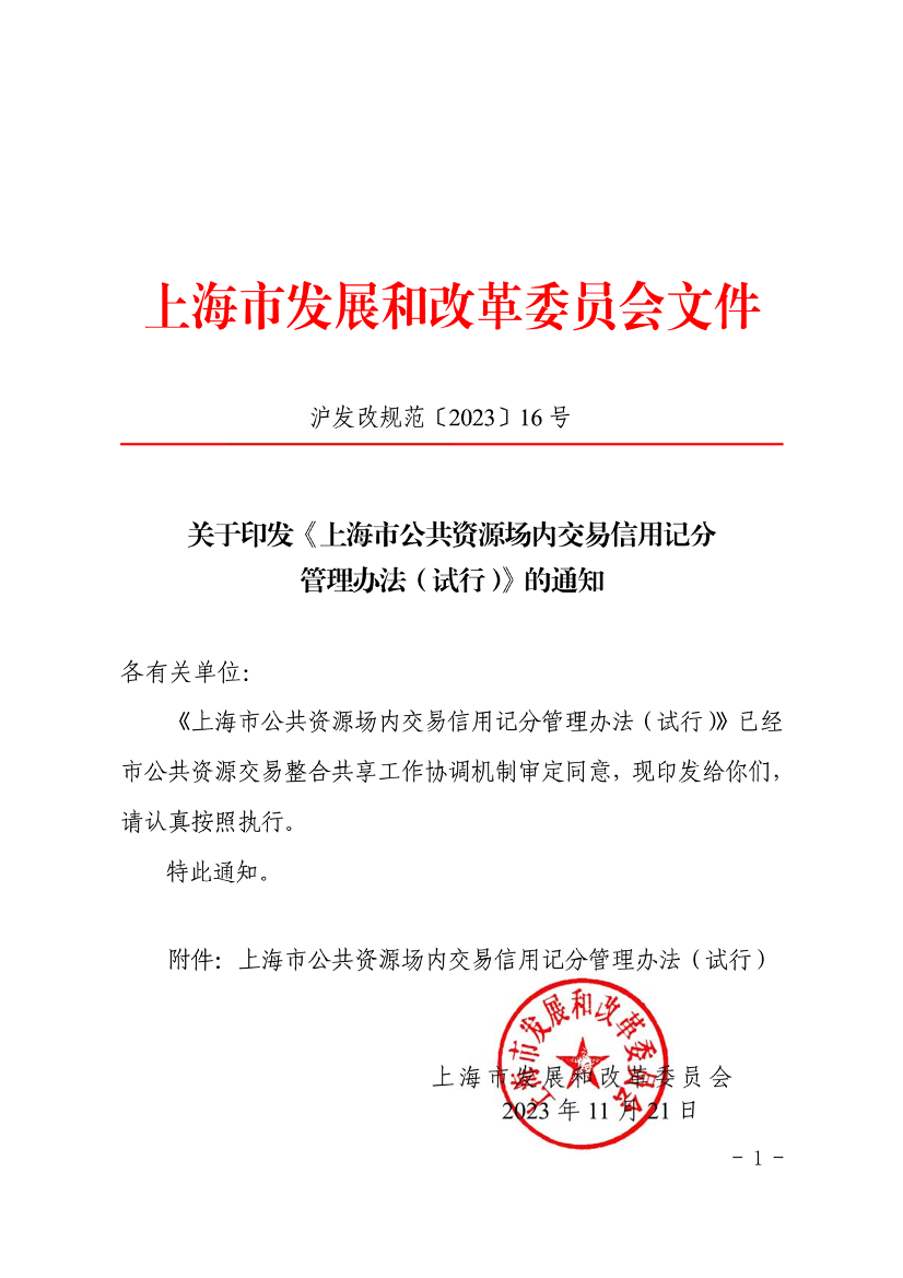 关于印发《上海市公共资源场内交易信用记分管理办法(试行)》的通知