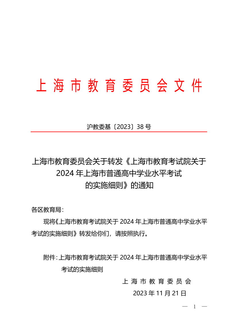 现将《上海市教育考试院关于2024年上海市普通高中学业水平考试的实施细则》转发给你们,请按照执行。
