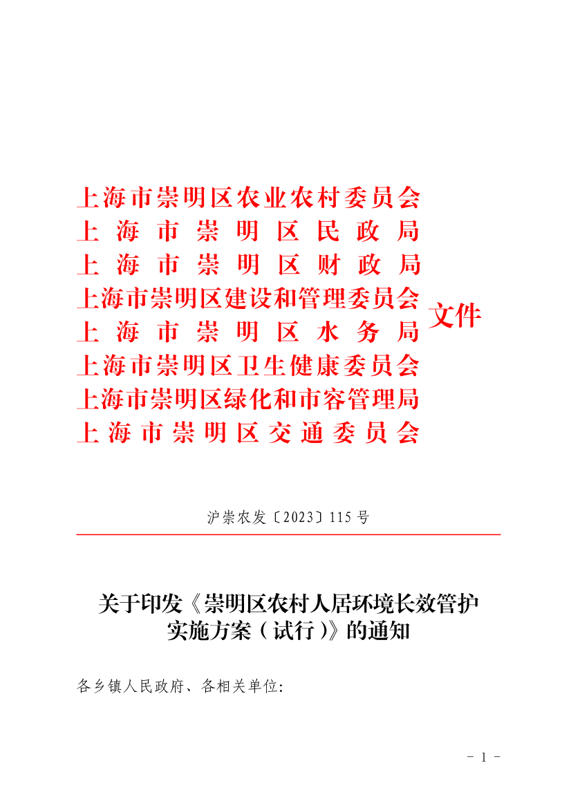 关于印发《崇明区农村人居环境长效管护实施方案(试行)》的通知