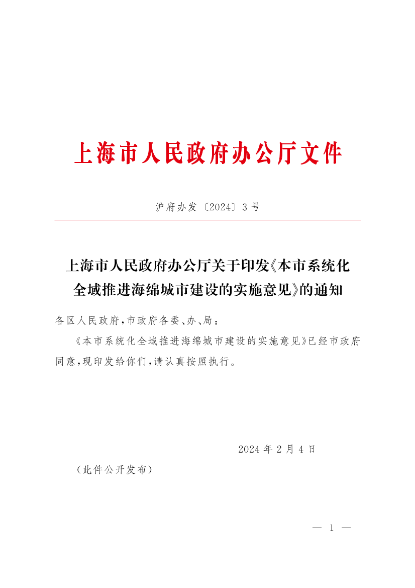 为贯彻落实《国务院办公厅关于推进海绵城市建设的指导意见》等精神,提升城市安全韧性,改善城市生态环境,在前期试点工作的基础上,现就本市系统化全域推进海绵城市建设提出实施意见如下: