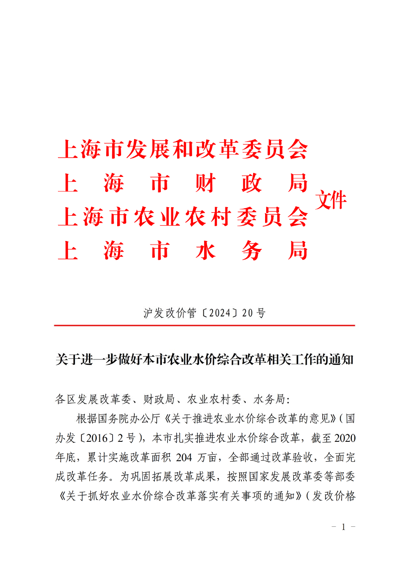根据国务院办公厅《关于推进农业水价综合改革的意见》(国办发〔2016〕2号),本市扎实推进农业水价综合改革,截至2020年底,累计实施改革面积204万亩,全部通过改革验收,全面完成改革任务。为巩固拓展改革成果,按照国家发展改革委等部委《关于抓好农业水价综合改革落实有关事项的通知》(发改价格〔2023〕633号)等文件要求,结合本市实际,现就进一步做好农业水价综合改革有关事项通知如下: