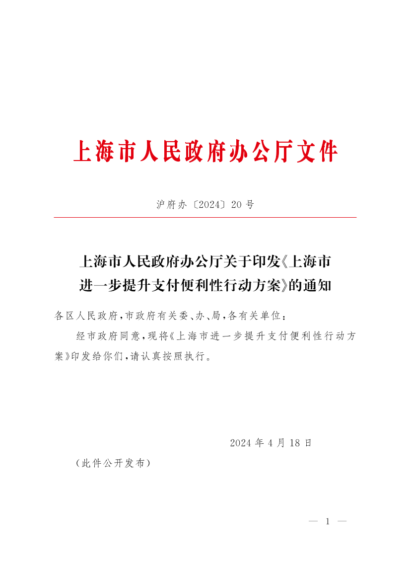 上海市人民政府办公厅关于印发《上海市进一步提升支付便利性行动方案》的通知