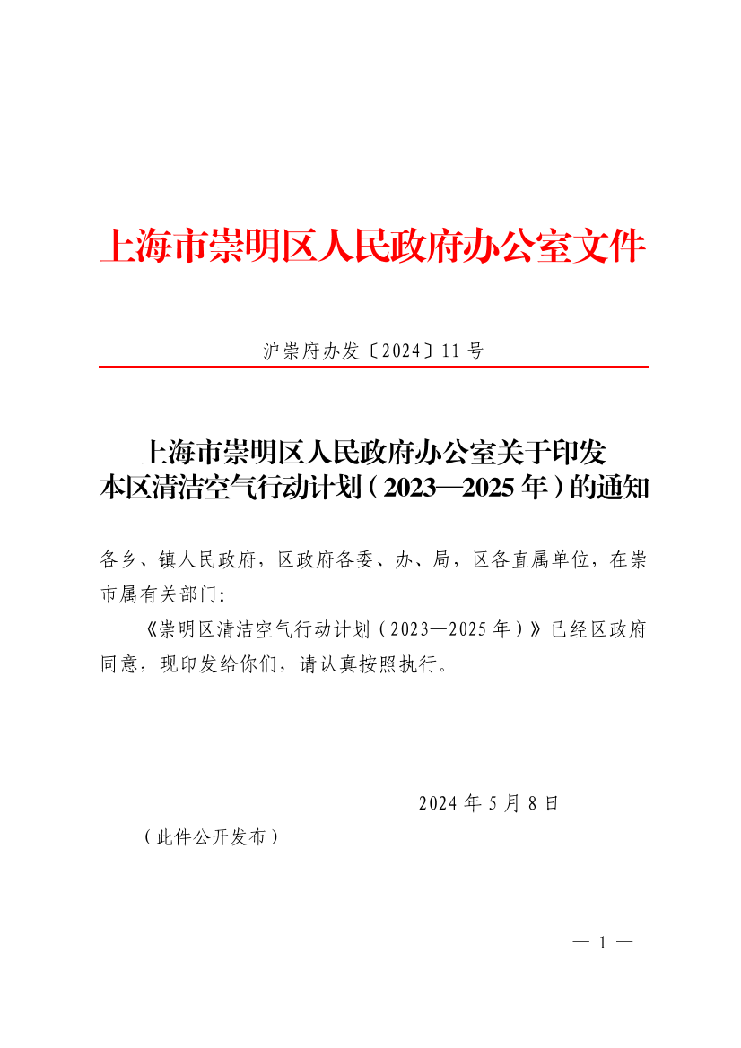 《崇明区清洁空气行动计划(2023—2025年)》已经区政府同意,现印发给你们,请认真按照执行。