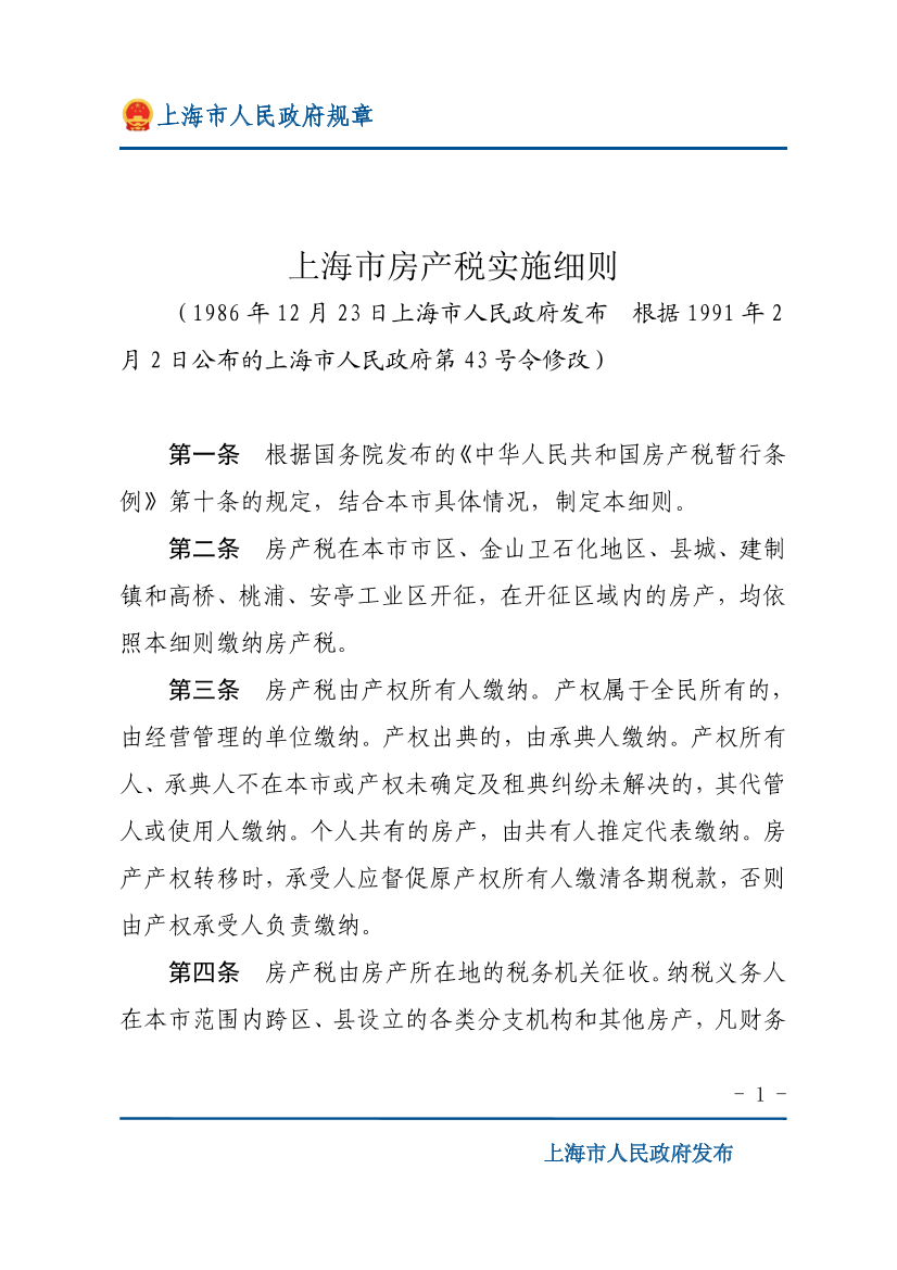 (1986年12月23日上海市人民政府发布,根据1991年2月2日公布的上海市人民政府第43号令修改)