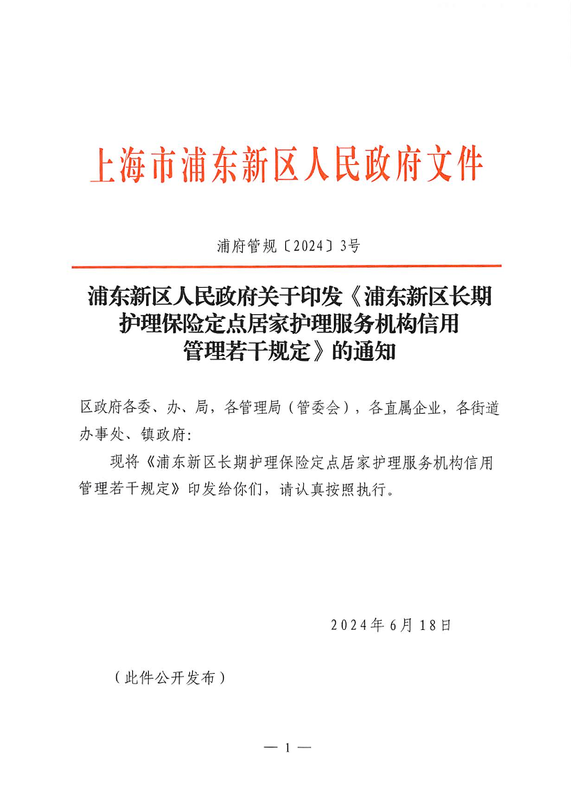 关于印发《浦东新区长期护理保险定点居家护理服务机构信用管理若干规定》的通知