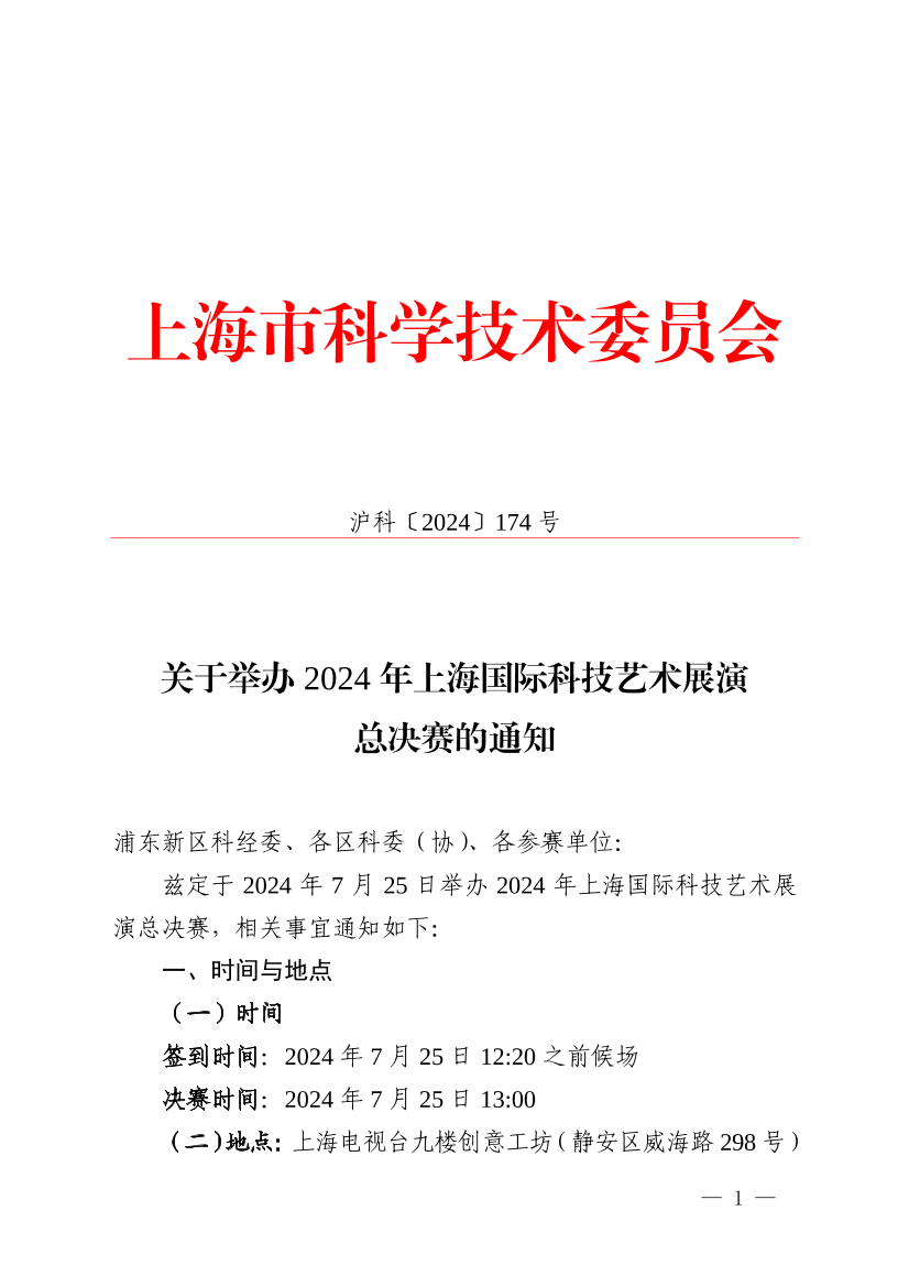 关于举办2024年上海国际科技艺术展演总决赛的通知