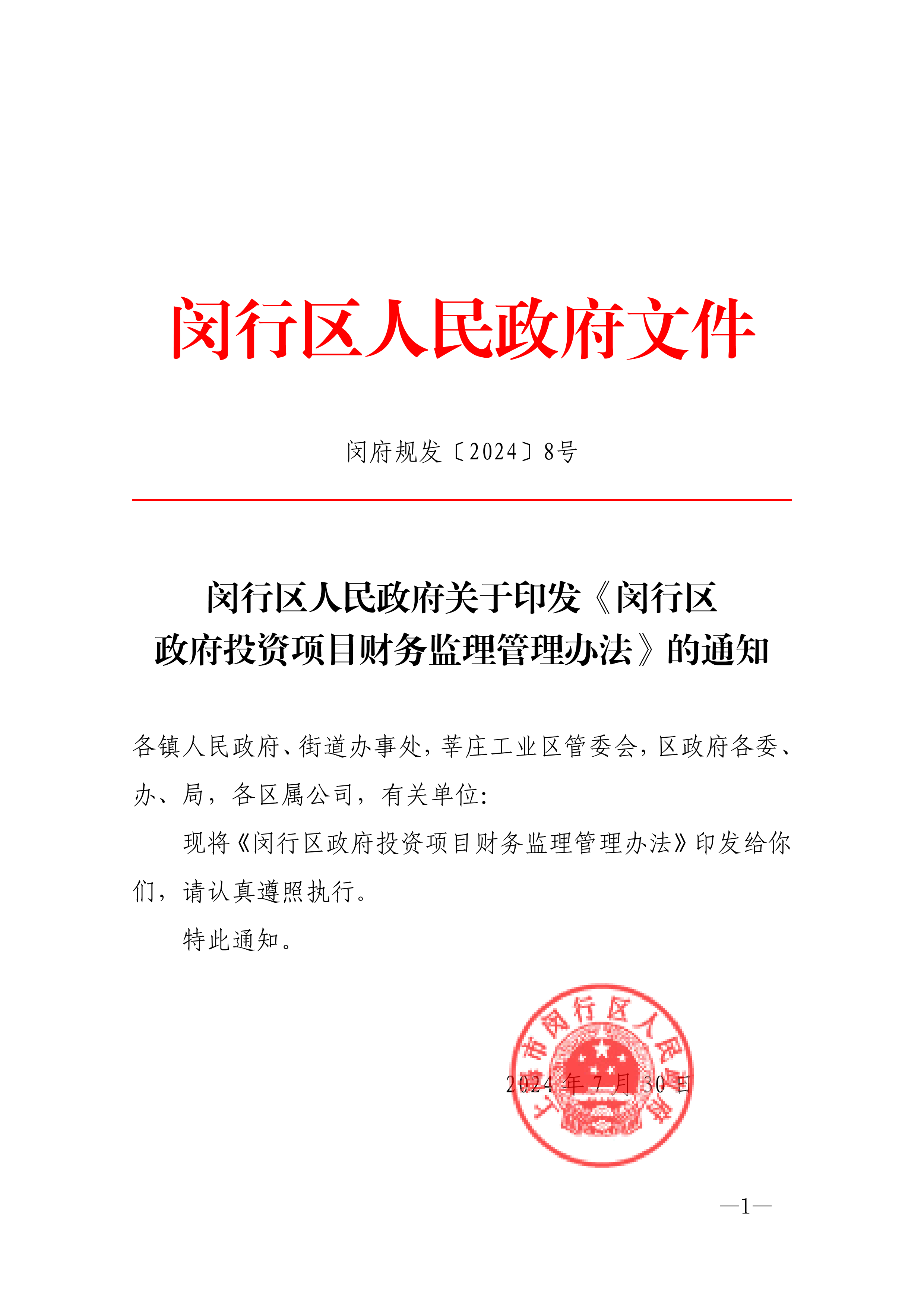 关于印发《闵行区政府投资项目财务监理管理办法》的通知