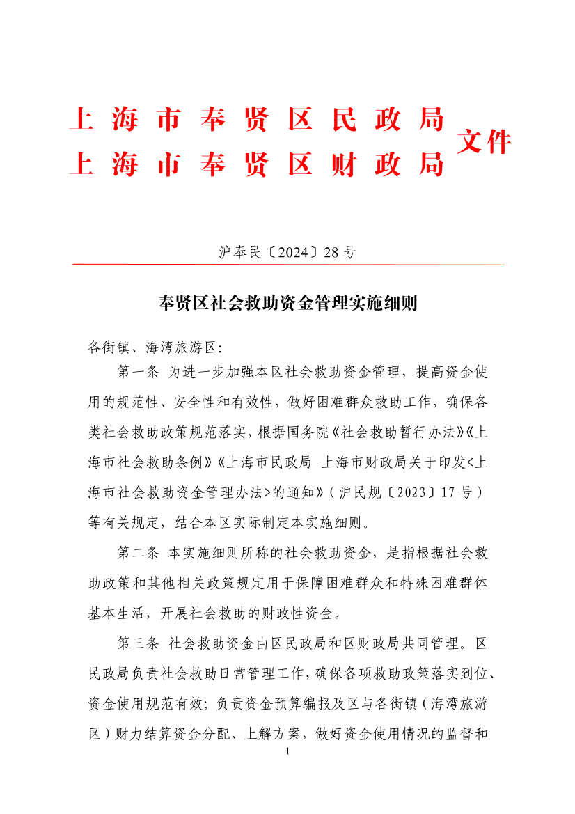 第一条 为进一步加强本区社会救助资金管理,提高资金使用的规范性、安全性和有效性,做好困难群众救助工作,确保各类社会救助政策规范落实,根据国务院《社会救助暂行办法》《上海市社会救助条例》《上海市民政局 上海市财政局关于印发<上海市社会救助资金管理办法>的通知》(沪民规〔2023〕17号)等有关规定,结合本区实际制定本实施细则。