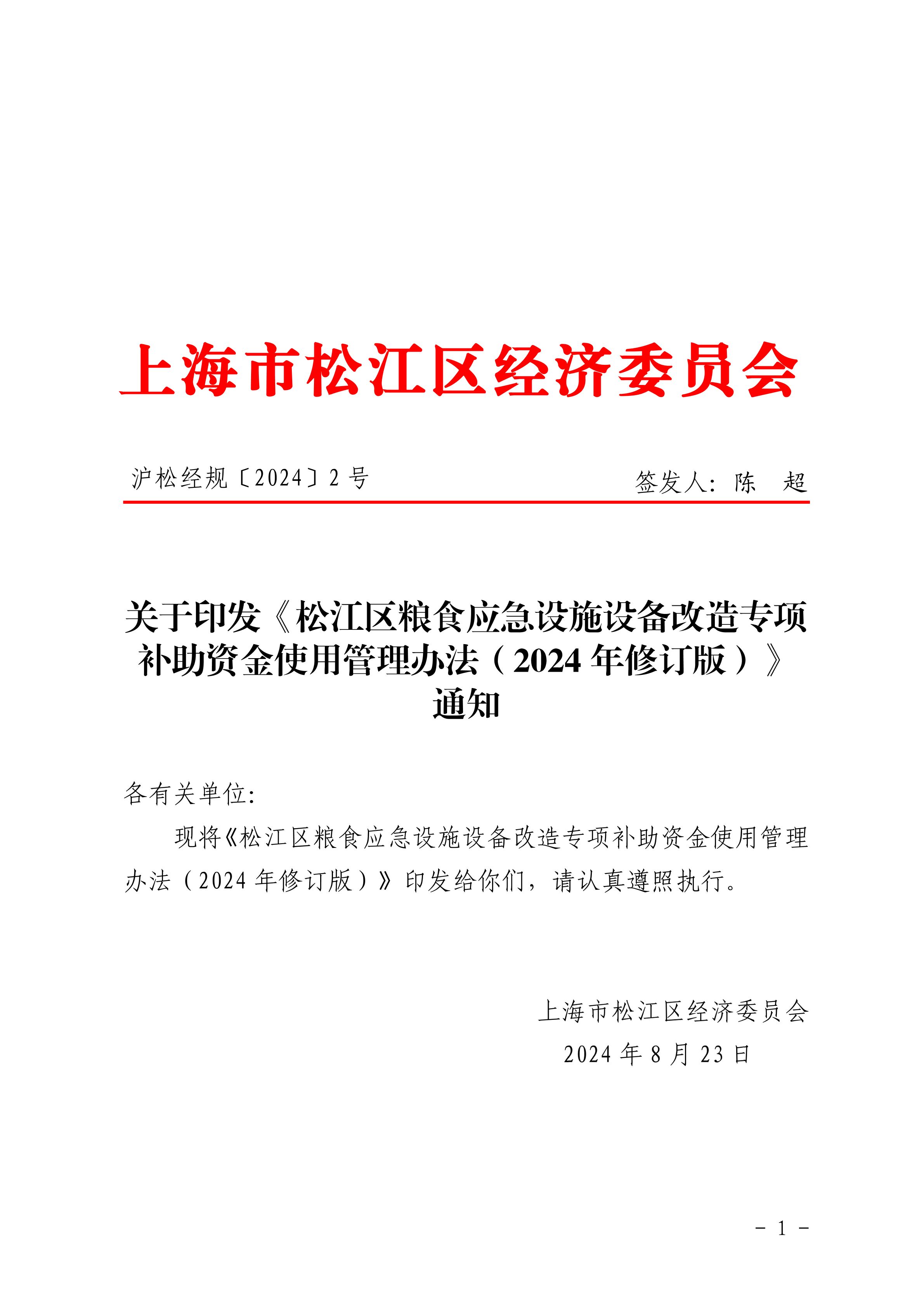 关于印发《松江区粮食应急设施设备改造专项补助资金使用管理办法(2024年修订版)》的通知