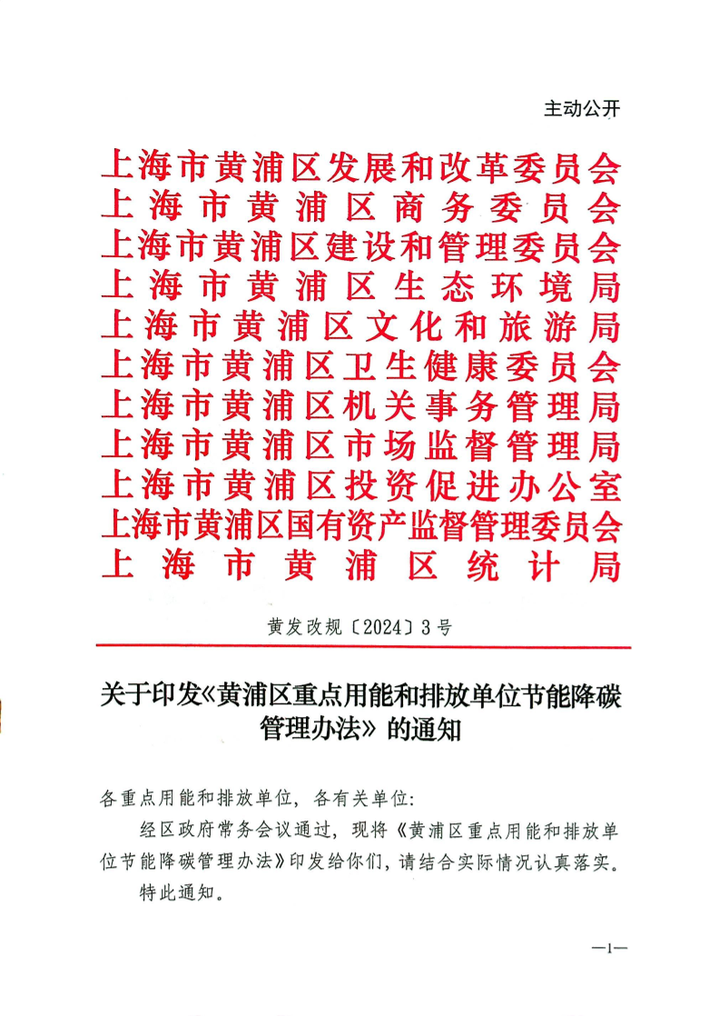 关于印发《黄浦区重点用能和排放单位节能降碳管理办法》的通知