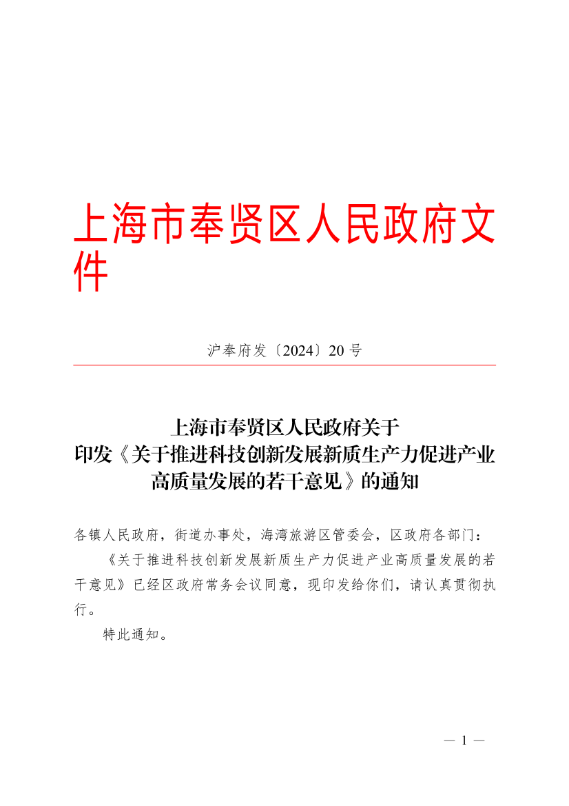 为深入学习贯彻党的二十届三中全会精神,贯彻落实十二届市委五次全会精神,认真落实五届区委九次全会精神,更好融入上海五个中心建设,加快发展新质生产力,构建以实体经济为基础、以科技创新为支撑、具有奉贤特色的现代化产业体系,推动产业高质量发展,提出若干意见如下。