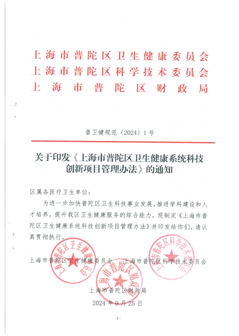 《上海市普陀区卫生健康系统科技创新项目管理办法》