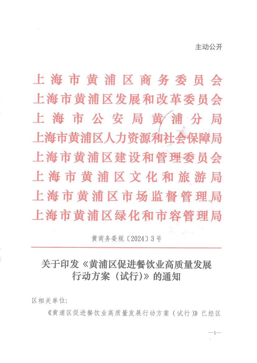 关于印发《黄浦区促进餐饮业高质量发展行动方案(试行)》的通知