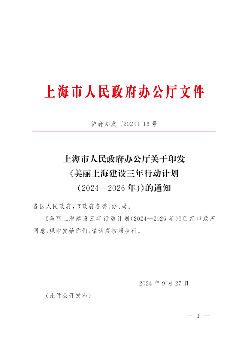 上海市人民政府办公厅关于印发《美丽上海建设三年行动计划(2024—2026年)》的通知