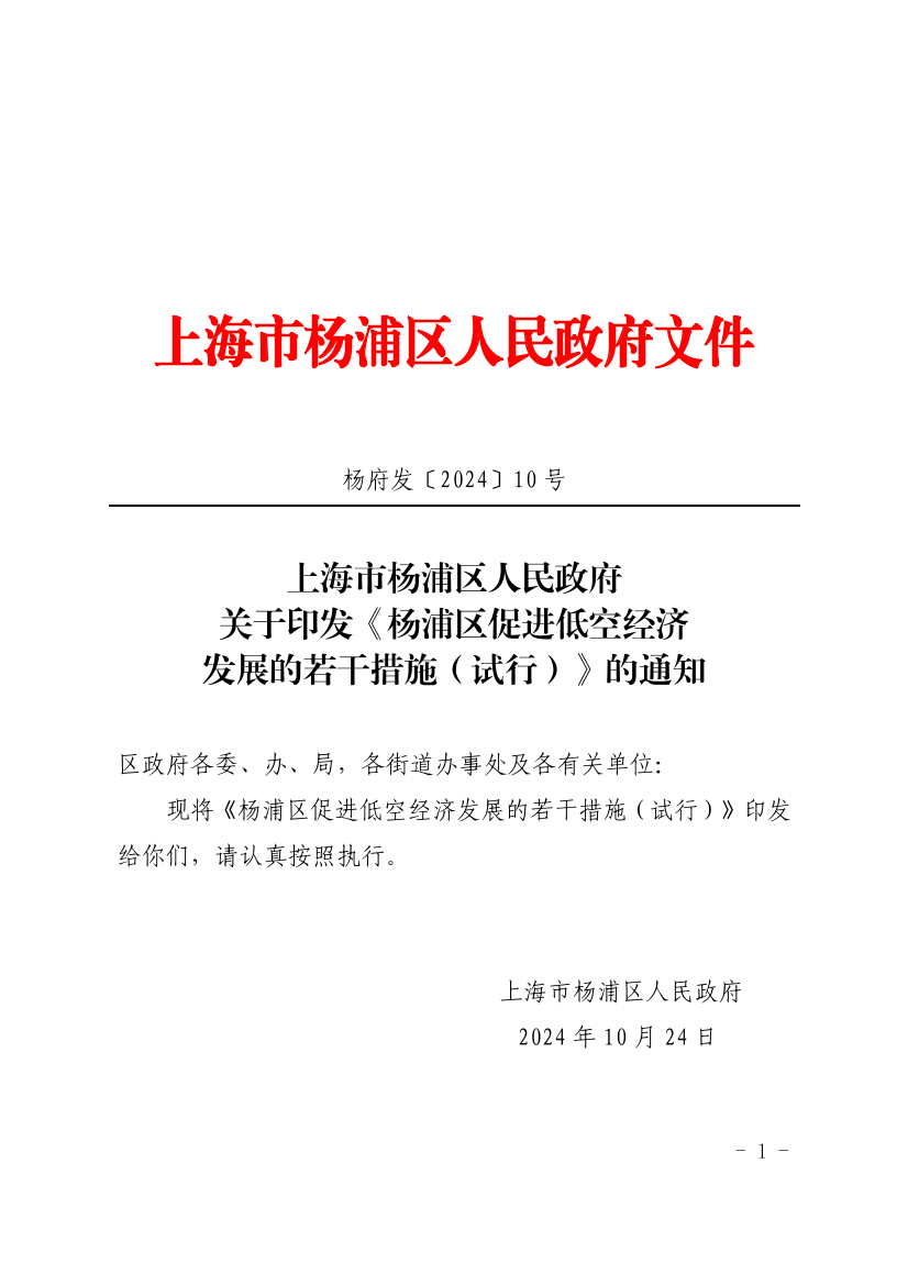 关于印发《杨浦区促进低空经济发展的若干措施(试行)》的通知