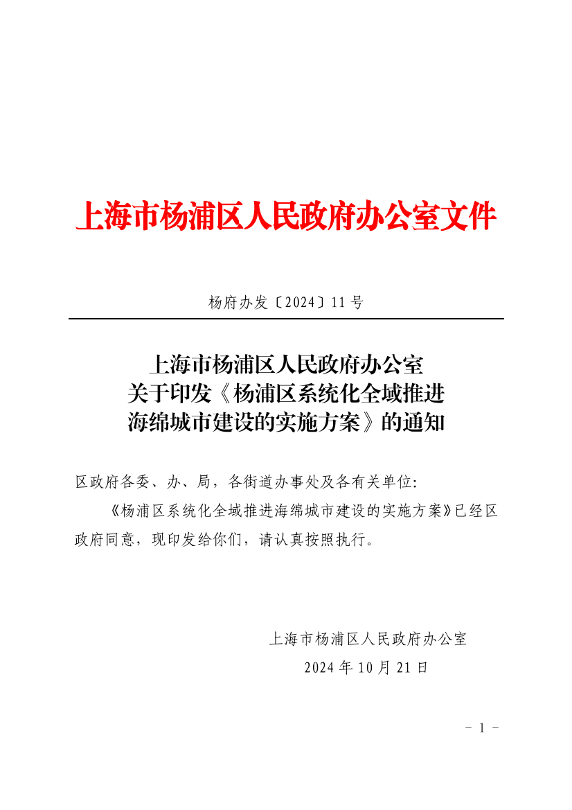 关于印发《杨浦区系统化全域推进海绵城市建设的实施方案》的通知