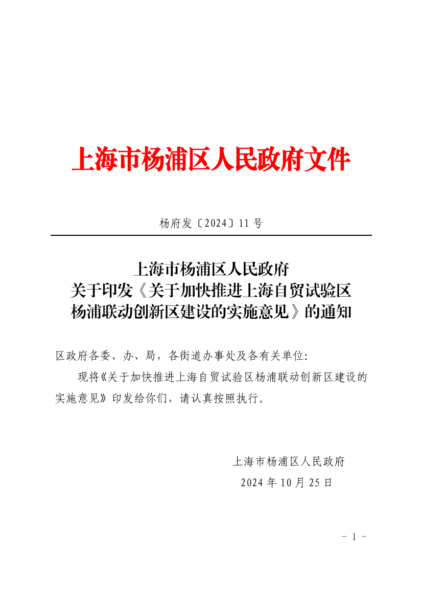 现将《关于加快推进上海自贸试验区杨浦联动创新区建设的实施意见》印发给你们,请认真按照执行。