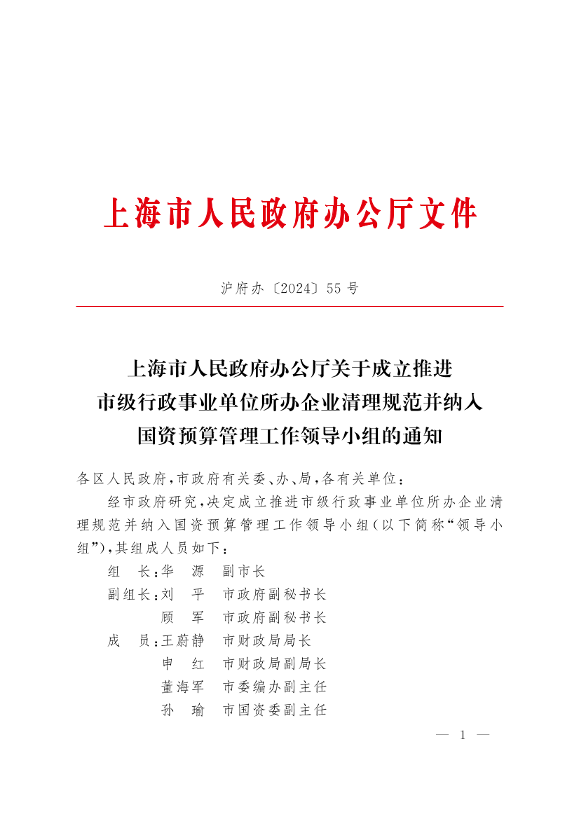 上海市人民政府办公厅关于成立推进市级行政事业单位所办企业清理规范并纳入国资预算管理工作领导小组的通知