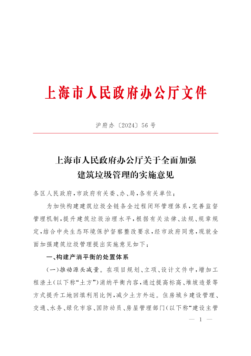 上海市人民政府办公厅关于全面加强建筑垃圾管理的实施意见
