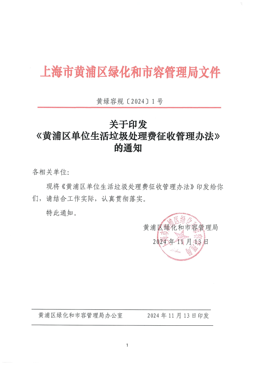 关于印发 《黄浦区单位生活垃圾处理费征收管理办法》的通知