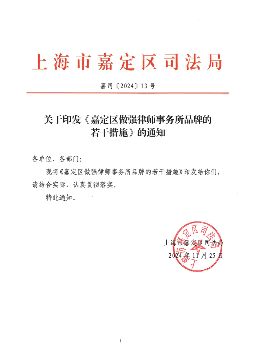 关于印发《嘉定区做强律师事务所品牌的若干措施》的通知