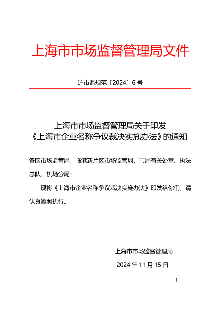 关于印发《上海市企业名称争议裁决实施办法》的通知