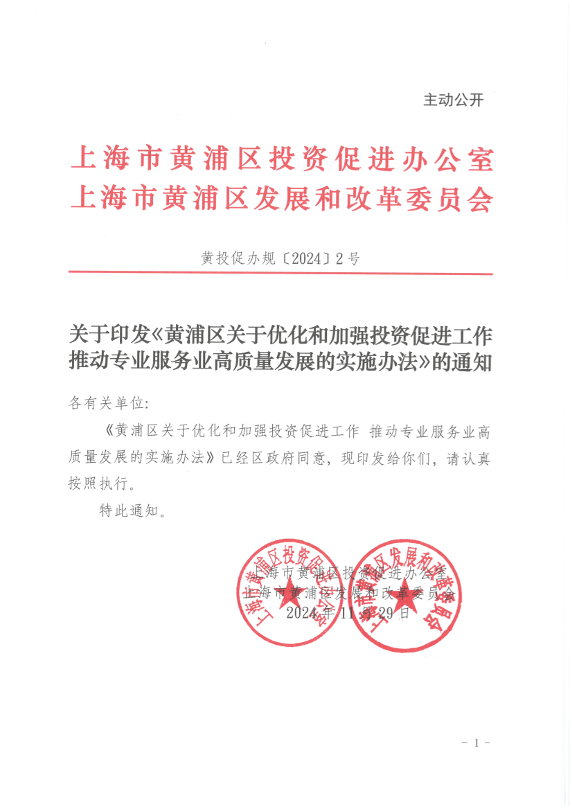 关于印发《黄浦区关于优化和加强投资促进工作 推动专业服务业高质量发展的实施办法》的通知