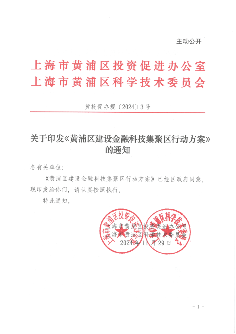 关于印发《黄浦区建设金融科技集聚区行动方案》的通知