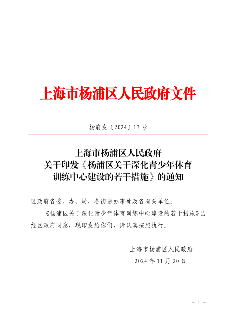 关于印发《杨浦区关于深化青少年体育训练中心建设的若干措施》的通知