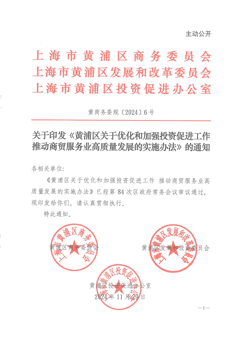 关于印发《黄浦区关于优化和加强投资促进工作 推动商贸服务业高质量发展的实施办法》的通知