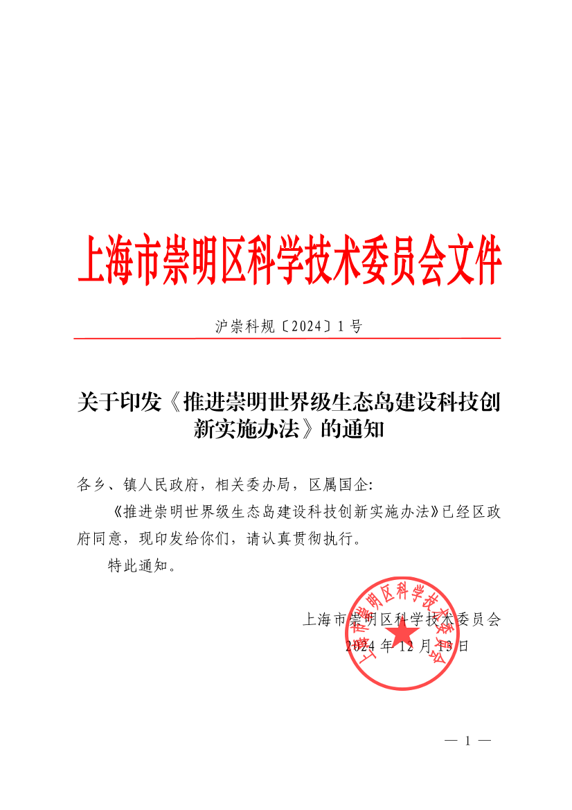 关于印发《推进崇明世界级生态岛建设科技创新实施办法》的通知