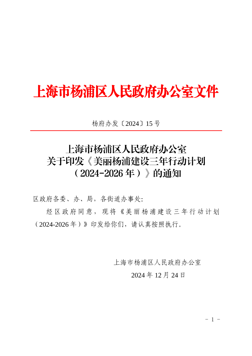 关于印发《美丽杨浦建设三年行动计划(2024-2026年)》的通知
