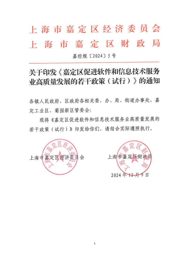 关于印发《嘉定区促进软件和信息技术服务业高质量发展的若干政策(试行)》的通知