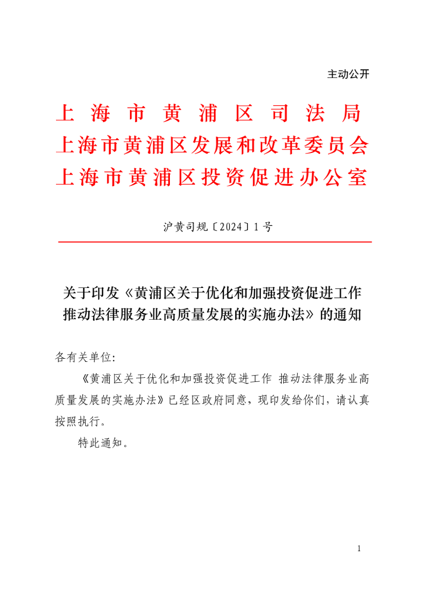 关于印发《黄浦区关于优化和加强投资促进工作 推动法律服务业高质量发展的实施办法》的通知