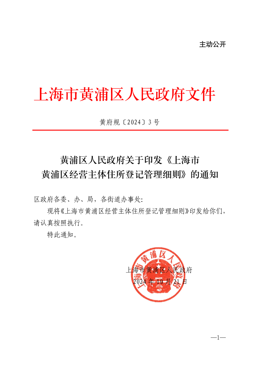 黄浦区人民政府关于印发《上海市黄浦区经营主体住所登记管理细则》的通知