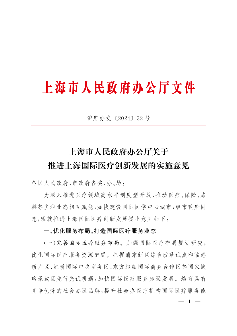 为深入推进医疗领域高水平制度型开放,推动医疗、保险、旅游等多种业态相互赋能,加快建设国际医学中心城市,经市政府同意,现就推进上海国际医疗创新发展提出意见如下: